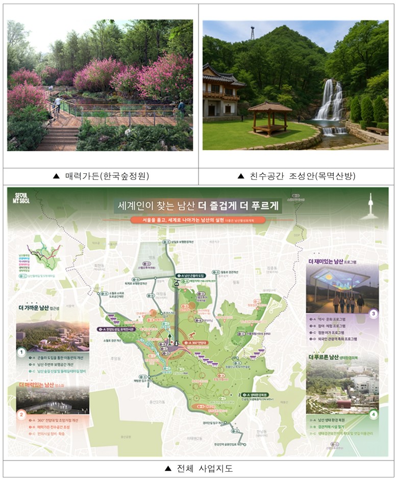 서울시는 연내 ‘더 좋은 남산활성화 계획’을 수립을 마무리하고 '26년 초 주민공청회를 거쳐 내년 상반기 본격적인 사업에 들어간다. 이번 계획은 남산을 보다 가깝게 접근성 개선, 시설.콘텐츠 정비, 훼손된 생태환경 복원으로 더 즐겁고 푸른 남산을 시민 품에 되돌려 주겠다는 것이 핵심이다.