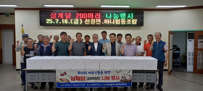 관내 택시회사인 마니협동조합은 무더위 속 어르신들의 건강을 지키고 지역사회에 따뜻한 마음을 나누고자 삼계닭을 기탁했다.