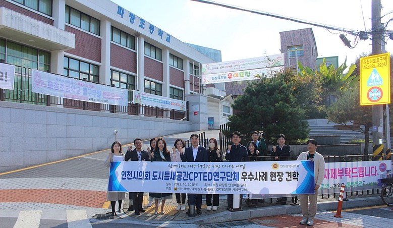 인천광역시의회 의원 연구단체인 ‘도시틈새공간 범죄예방디자인(CPTED) 적용 사례연구회(대표의원 조성환)’는 지난 20일 경기도 수원시 장안구 파장동 안전마을을 찾아 파장초교 정문 안전 쉼터 계단과 자연친화형 생태 정원, 불법주정차 바닥 안전길, 골목길 범죄예방디자인 등을 둘러보며 골목길 공공디자인 우수사례를 견학했다.