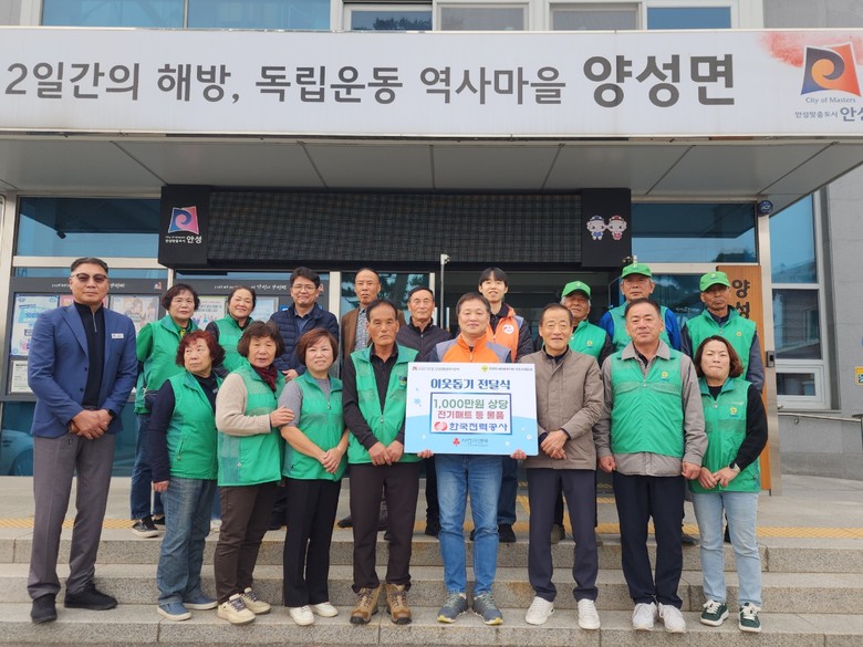[안성시 세계타임즈=송민수 기자] 지난 10월 30일 한국전력공사 경인건설본부(본부장 함방욱)는 양성면새마을회를 통해 양성면 지역주민을 위한 전기탄소매트 등 1,000만 원 상당의 후원물품을 기탁했다.