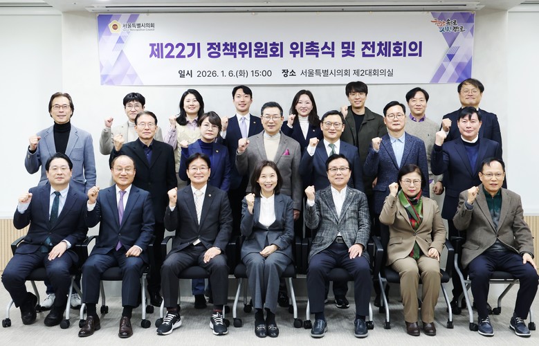 서울특별시의회(의장 최호정)는 지난 6일 의원회관에서 제22기 정책위원회 위촉식과 전체 회의를 개최하고 위원들에게 위촉장을 수여했다.
