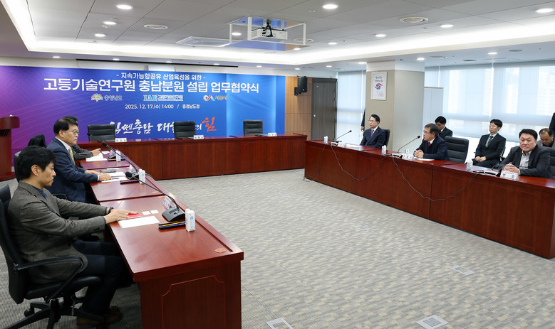 협약에는 충남도, 서산시, 고등기술연구원이 참여했으며, 각 기관은 고등기술원 충남분원 설립을 중심으로 지속가능항공유(SAF) 산업의 전략적 육성과 상용화를 위해 상호 협력하기로 했다