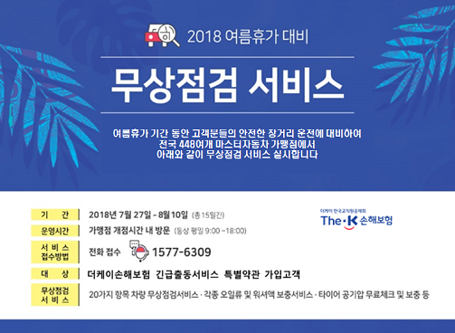 더케이손보는 타이어공기압, 브레이크, 오일, 엔진, 배터리 등의 20여가지 항목에 대해 진단 서비스를 제공하고, 워셔액과 각종 오일류를 무상 보충해준다. 해당 고객은 마스터 콜센터로 예약 후 방문하면 된다.