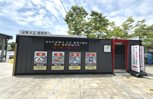 교통사고 체험관은 약 8평 규모의 컨테이너 박스를 개량해 조성됐으며 매일 아침 9시부터 저녁 8시까지 휴게소를 방문하는 누구나 관람할 수 있다.