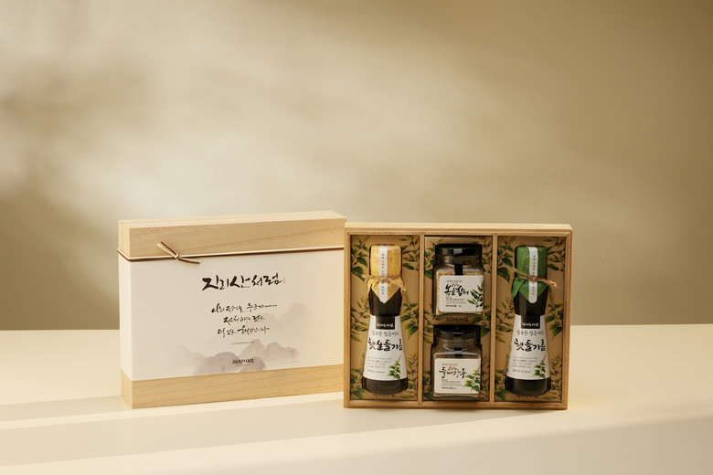 지리산 둘레길 초입 주천면에 위치한 (유)웅치마을영농회는 직접 튀긴 곡물 튀밥에 견과류를 버무려 수제 강정과 에너지바를 만든다. 곰재강정선물세트(30,000원)에는 들깨땅콩강정과 옥수수강정, 찰현미강정, 참깨쌀강정 등이 골고루 들어있어 다양한 맛을 즐길 수 있다. 마을 주민들이 직접 재배한 꽃으로 만든 메리골드와 ABC 티백차(세트 20,000원)는 집중이 필요한 수험생, 피로에 지친 직장인들에게 미량 영양소를 보충해 줄 수 있는 좋은 아이템이다. 국내산 쌀에 지리산 홍시를 더해 전통 방식으로 고아낸 홍시 조청세트(25,000원~40,000원)는 꿀이나 잼 대용으로 활용도가 높다.