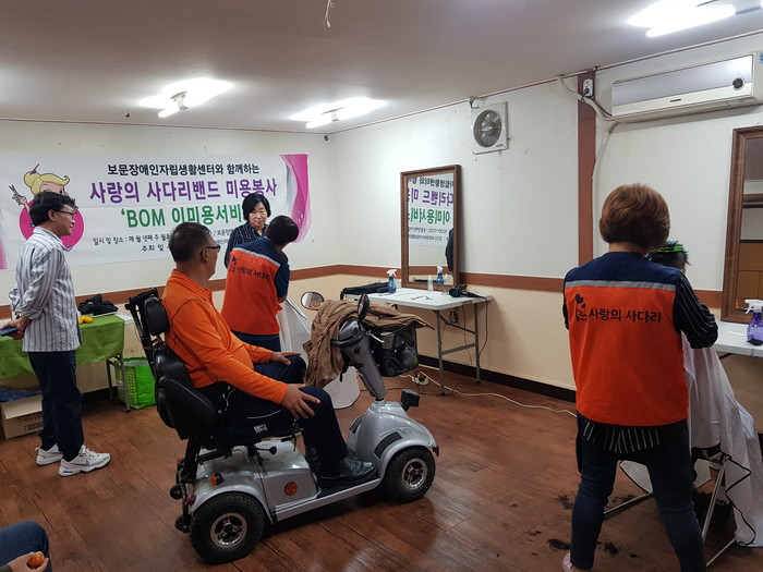 [대전=세계타임즈 이장성 기자] 대전시 SNS 봉사단체 사랑의 사다리 밴드(리더 이정제)는 21일, 오전10시, 동구 판암동에 위치한 보문장애인자립생활센터(소장 신인수)에서 미용봉사(단장 송남석)로 우리 사회의 따뜻한 사랑을 실천하였다.