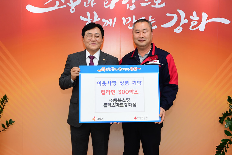 [강화군 세계타임즈=심하린 기자] 강화군(군수 박용철)은 ㈜동북쇼핑 플러스마트(대표 백창헌)가 27일 사회복지공동모금회를 통해 컵라면 300박스를 강화군에 기탁했다고 밝혔다.