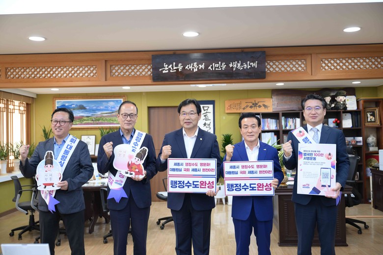또한, 행정수도 완성을 기원하는 글귀가 담긴 팻말을 들고 기념 촬영을 진행했다.
