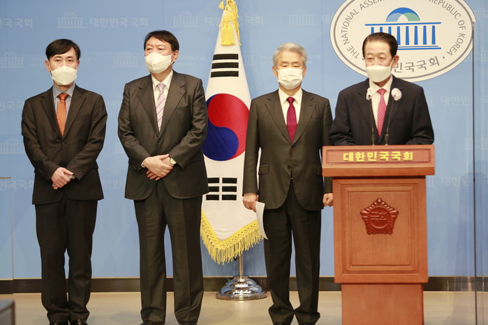 [세계타임즈 이진화 기자]국민의힘 대선경선 후보인 윤석열 전 검찰총장이 내달 초 ‘광주 방문’을 예고한 데 이어, 호남 거물급 정치인으로 손꼽히는 박주선 전 국회부의장과 김동철 전 바른미래당 원내대표가 29일 오후 서울 영등포구 국회 소통관에서 기자회견을 열고 지지선언을 했다.