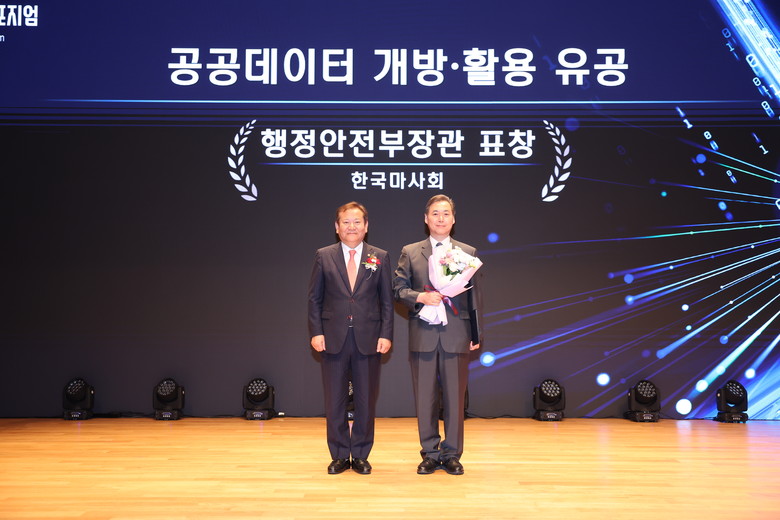 [세계타임즈 = 송민수 기자] 한국마사회(회장 정기환)가 행정안전부 주관 ‘2023년 공공데이터 발전 및 개발·활용 유공 포상(이하 공공데이터 유공 포상)’에서 우수기관으로 선정되어 행정안전부 장관 표창을 받았다.