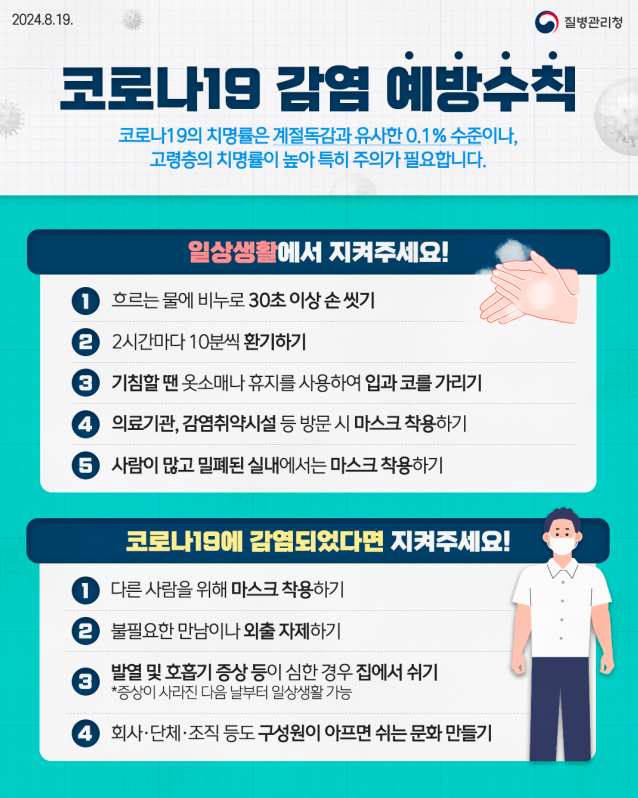 구 보건소 관계자는 “코로나19로부터 건강한 여름을 보내려면 모두가 일상에서 손 씻기, 기침 예절 등 감염 예방 기본 수칙을 지키고, 고위험군과 감염취약시설은 세심한 주의가 필요하다.”라고 말했다.