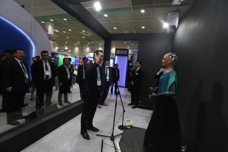 개막식을 마친 김태수 위원장은 전시관을 둘러보며, AI 휴머노이드 로봇 ‘소피아’, 용산국제업무지구 스마트도시, 차량 데이터 스마트 스캐너 등 주요 전시를 관람하고 현장 관계자들을 격려하였다.