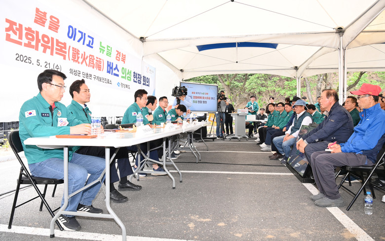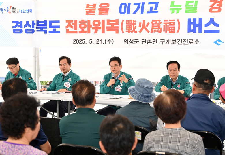 - 의성 구계리 마을 재건사업...마을통합․확대 재창조로 대대손손 지속가능한 마을로 재건 - [세계타임즈=경북 한윤석 기자] 경상북도는 21일 경북 북부지역 산불로 피해를 본 의성군의 산불피해 복구 및 지원을 위해 단촌면 구계보건진료소에서 이철우 도지사가 직접 주재한 ‘경상북도 전화위복(戰火爲福)버스’네 번째 현장 회의를 열었다.