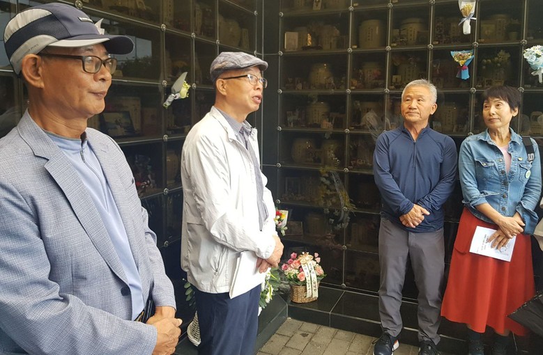 | ▲지난 9월 21일(토) 광주시 오포리에 있는 분당추모공원 휴에서 고 김수길 민청학련 회원 겸 성대출신 민주인사 5주기 추모제에서 여동생 등 참석자들이 제물을 놓고 있다. |