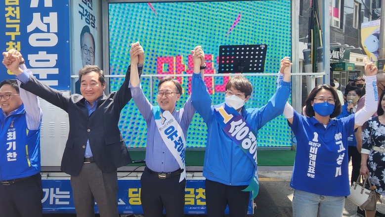 [세계타임즈 = 이장성 기자] 6.1지방선거 유세 마지막날인 31일(화) 오후 유성훈 금천구청장 후보의 당선을 위해 이낙연 전 국무총리가 오후 1시 30분 금천을 방문해 지원 유세를 펼쳤다.