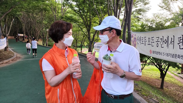 5.18 상무공원과 무각사 일대에서 지난 7월에 이어 두 번째로 실시된 나눔행사는 무더위로 지친 일상에 활력소가 될 수 있는 반려식물을 무료로 제공하고 주민들에게 생수를 나누면서 자원 순환과 기후위기에 대한 경각심을 홍보하는 행사이다.