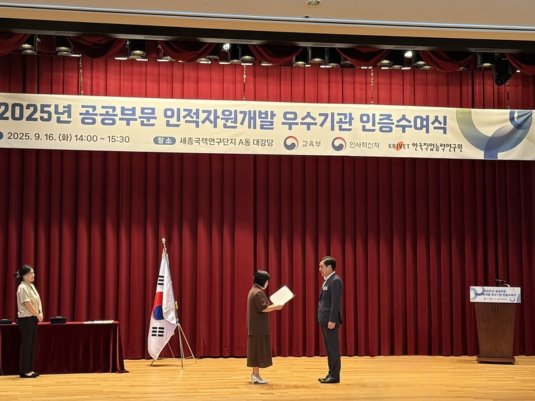 교육부와 인사혁신처가 공동 주관하는 ‘공공부문 인적자원개발 우수기관 인증제’는 인적자원관리(HRM)와 인적자원개발(HRD)에 대한 모범적인 기준을 달성한 우수 공공기관을 인증하는 것으로, 인증 자격은 3년간 유지된다.