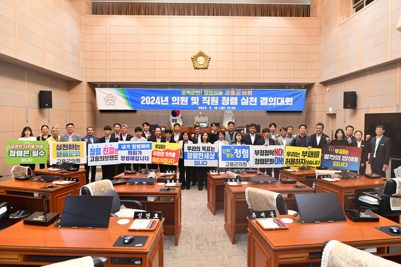 이재학 의장은 “이번 결의를 시작으로 의원뿐 아니라 직원까지 솔선수범해 부패 없는 청렴한 분위기를 조성하여 군민들의 기대에 부응하는 청렴하고 공정한 고흥군의회로 도약하겠다”고 밝혔다.