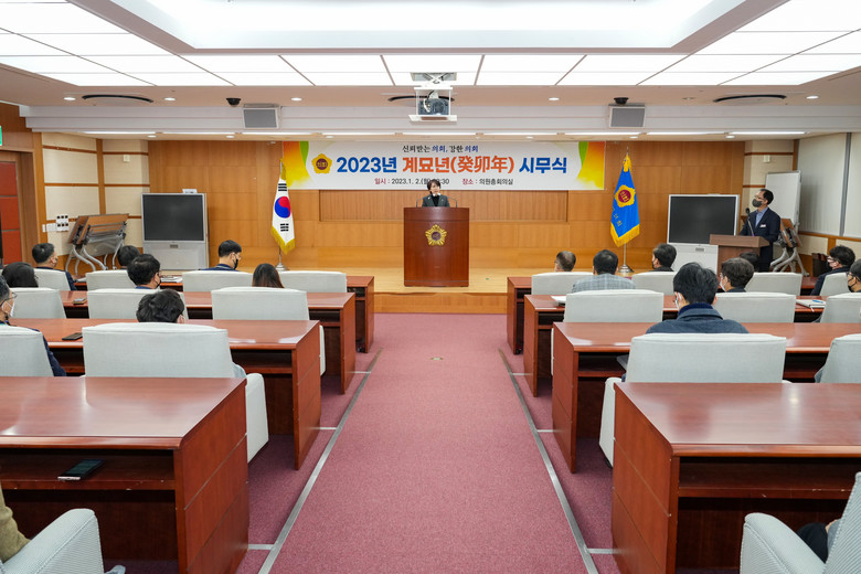 [전북세계타임즈 = 전영숙 기자] 전라북도의회는 2일 의원 총회의실에서 국주영은 의장과 김양원 사무처장 및 직원들이 참석한 가운데 시무식을 갖고 2023년 새해 업무를 시작했다.