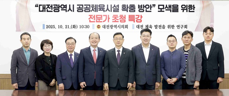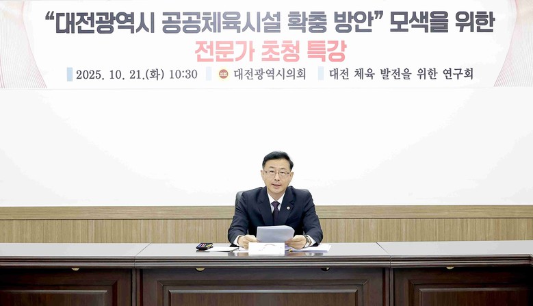 [대전 세계타임즈=이채봉 기자] 대전시의회 의원연구회인 ‘대전 체육 발전을 위한 연구회’(회장 민경배 의원)는 21일 시의회 3층 공감실에서 「대전광역시 공공체육시설 확충 방안」을 주제로 전문가 초청 특강을 개최했다.
