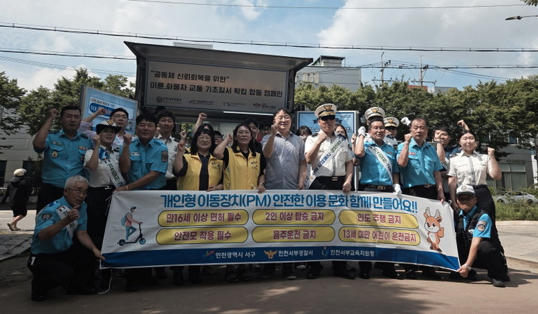 [서구 세계타임즈=심하린 기자] 인천 서구(구청장 강범석)는 지난 7일 가좌이음숲(가재울역 옆)에서 개인형 이동장치의 안전한 이용 문화 확산을 위해 교통안전 유관기관인 인천서부경찰서, 한국교통안전공단, (사)퀵서비스협회 등 40여 명이 참여하여 교통안전 기관 합동 캠페인을 진행했다고 8일 밝혔다.