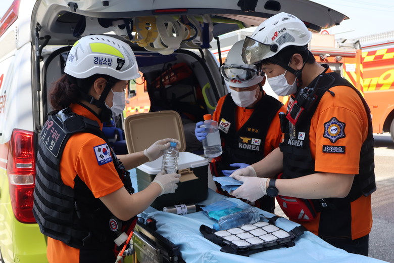 경남소방본부는 여름철 온열질환자에 대해 보다 전문적인 현장 대응 역량을 강화하기 위해 119구급대원 및 펌뷸런스 대원들을 대상으로 사전 응급처치 교육도 실시했다.