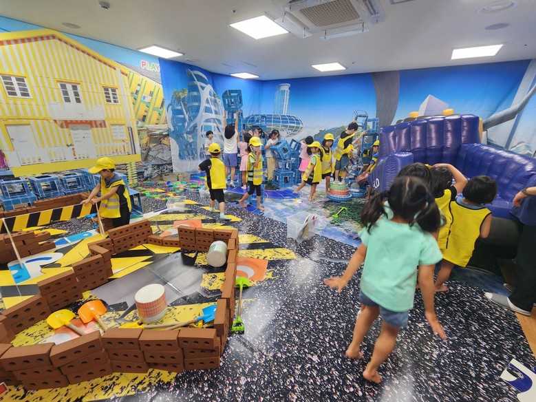 이 체험은 산마루초등학교병설유치원 내에서 진행되었으며, 건축 놀이를 마친 후에는 준비된 투명 에어바운스에서 대근육 활동을 하며 아이들이 정서적 긴장감을 풀고 즐거운 시간을 보냈다.