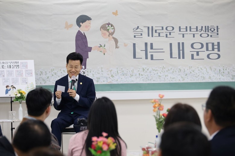 | ▲ 지난 3월 15일 곽종렬 지파장이 ‘슬기로운 부부생활’ 프로그램에 참여해 질의응답 시간을 갖고 있다. [사진 제공 = 신천지 바돌로매지파] |