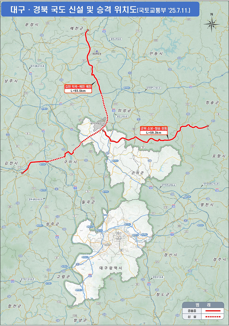 | ▲ 대구광역시 국도 신설 및 승격 위치도(대구경북) |