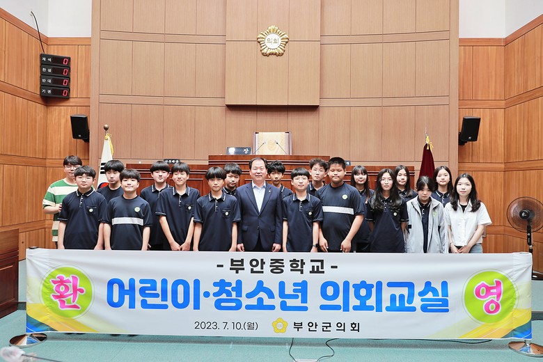 김광수 의장은 “부안중학교 학생들의 부안군의회 방문을 진심으로 환영한다”며, “학생들이 지방의회에서 이뤄지는 의사결정 과정을 직접 체험해 보면서 의회라는 곳에 조금이나마 알고 갈 수 있는 시간이 되길 바람과 오늘 체험이 소중한 추억과 함께 민주시민으로 성장할 수 있는 계기가 되기를 바란다”고 말했다.