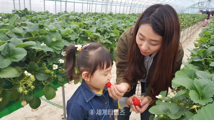 [충주=세계타임즈 이현진 기자] 딸기 아이 누가 더 이쁘지!