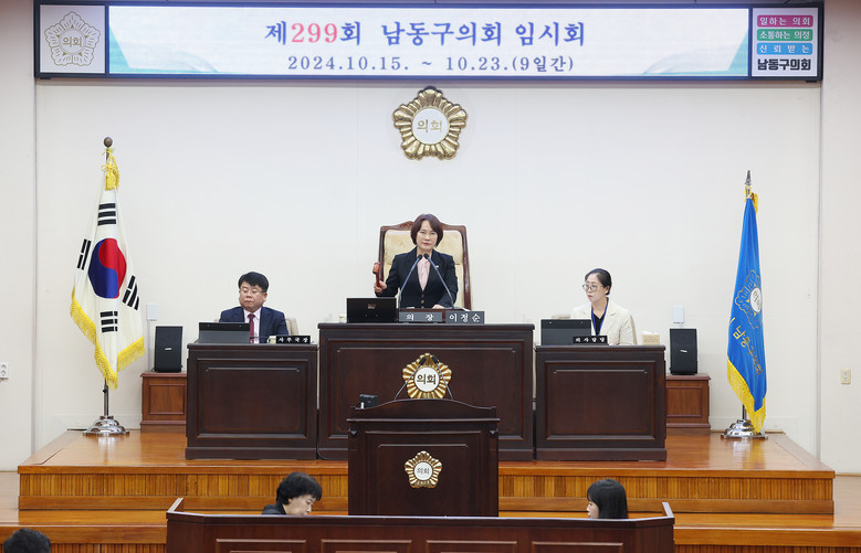 [남동구 세계타임즈=심하린 기자] 남동구의회(의장 이정순)가 15일 제299회 임시회 제1차 본회의를 시작으로 23일까지 9일간의 의사일정을 시작했다.