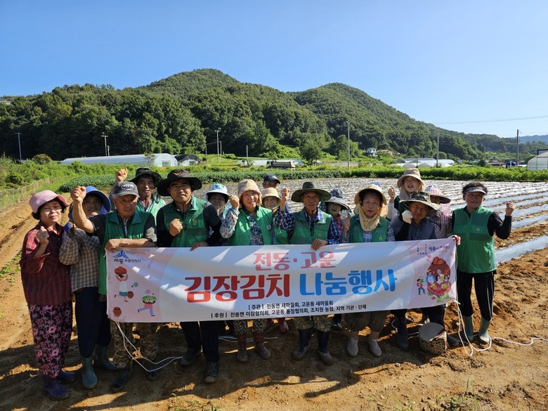 이날 행사에는 전동면새마을회 회원 30여 명이 참여해 배추 2,500여 포기를 심었다.