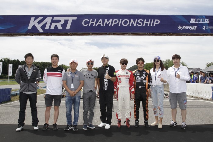 [사진설명]지난 시즌 홍보대사로 활동한 류시원(가운데) 팀106 감독을 비롯해 여러 프로 드라이버들이 카트 경기장을 찾아 꿈나무들과 소통하고 응원했다.