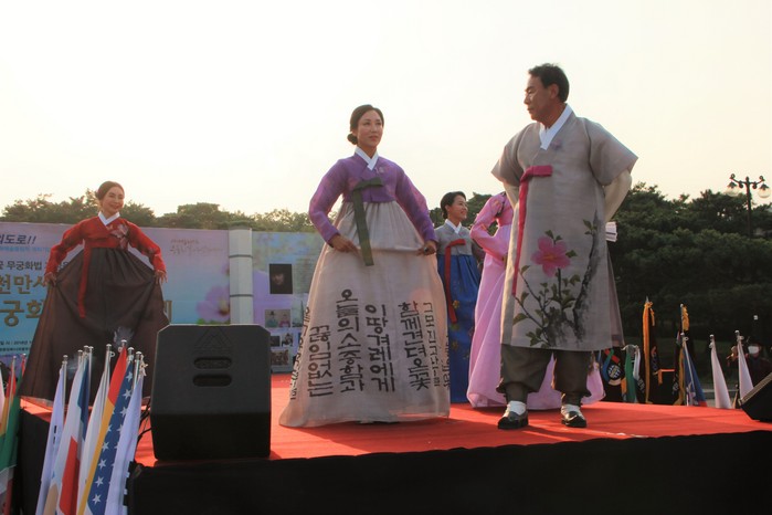 [세계타임즈 김인수기자] 지난 15,17일 이틀동안 여의도공원 문화마당(중앙광장)에서 무궁화한복쇼가 성대하게 열렸다. 이날 서현 김영희한복에서 제작한 무궁화꽃한복을 펀씨 코리아 모델 20여명이 멋진 무대를 선보였다.