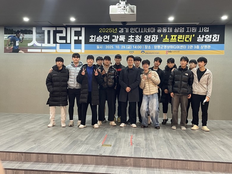 이번 상영회에는 청운고등학교 학생들과 양평군영상미디어센터 교육생 등 총 28명이 참여했으며, 상영은 오후 2시부터 3시 30분까지 진행됐다. 상영 후 진행된 관객과의 대화에서는 최승연 감독이 ‘스프린터’ 제작 배경을 비롯해 이전 작품들, 영화의 제작 의도, 배우 섭외 과정, 차기작 계획 등에 대해 진솔하게 이야기했다. 참석자들은 감독의 설명을 경청하며 영화 창작의 다양한 이야기를 이해할 수 있는 기회를 가졌다.