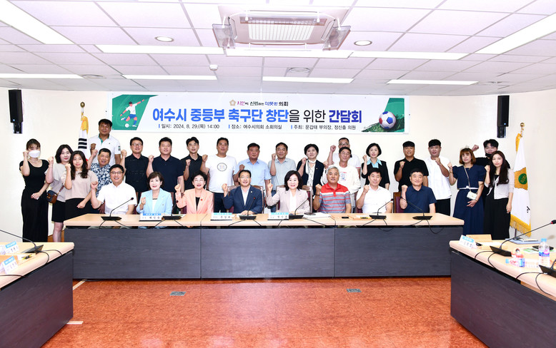 [여수시 세계타임즈=우덕현 기자] 여수시의회(의장 백인숙)는 8월 29일 여수시의회 소회의실에서 정신출 의원, 문갑태 부의장 공동 주최 ‘중등부 축구단 창단을 위한 간담회’를 개최햇다.
