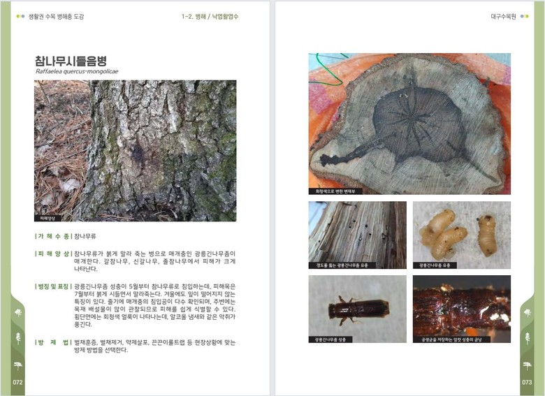 특히, 풍부한 시각 자료와 병해충 진단 포인트, 방제 기준 등을 수록해, 조경수 및 가로수 관리에 종사하는 전문가뿐만 아니라 일반 시민들도 쉽게 이해하고 활용할 수 있도록 구성됐다.