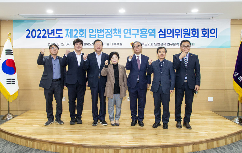 [경북 세계타임즈=한성국 기자] 경상북도의회는 10. 27.(목) 의회 다목적실에서 2022년도 입법정책 연구용역 제2차 심의위원회를 개최하여, 신임 입법정책연구용역 심의위원 위촉 수여 및 연구단체로부터 제안된 4건의 연구과제에 대해 심의·의결했다.