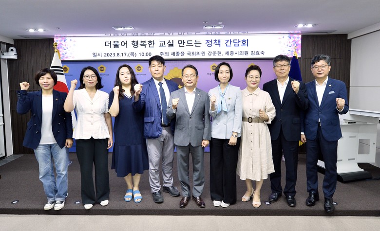 [세종 세계타임즈=이채봉 기자] 세종특별자치시의회 김효숙 의원(나성동)은 17일 오전 10시 세종시의회 1층 대회의실에서 강준현 세종을 국회의원과 함께 학교 폭력과 교권 보호를 위한 ‘더불어 행복한 교실 만드는 정책 간담회’를 열었다.