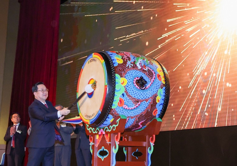 이날 선포식에서 이장우 대전시장은 통합설명회를 찾은 주요 내빈들과 대전경제의 도약과 기업들의 건승을 기원하는 마음을 담은 타북 세레모니를 진행했다.
