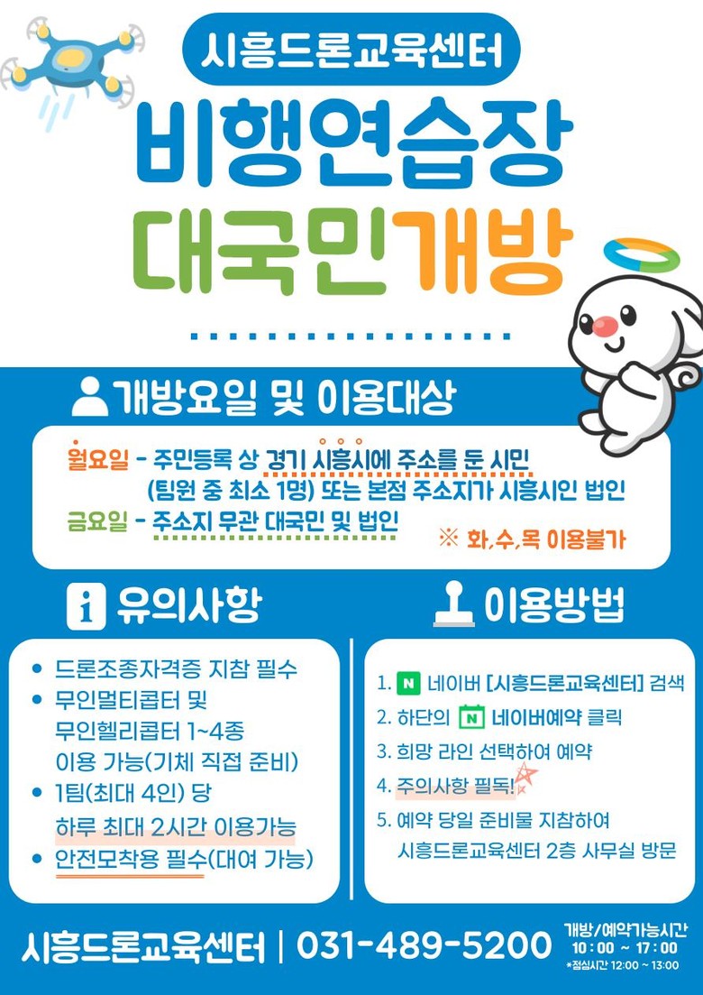 * 네이버‘시흥드론교육센터’검색 > 네이버 스마트플레이스 ‘예약’을 통해 신청 가능