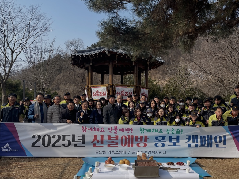 [세종 세계타임즈=이채봉 기자] 세종특별자치시 금남면(면장 김건제)이 16일 금병산에서 금남면 의용소방대, 산불진화대·감시원 등 60여 명이 참석한 가운데 봄철 산불조심 기간(1.24∼5.15) 산불 예방을 다짐했다.