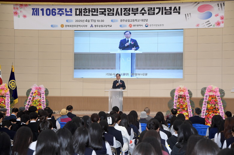[광주 세계타임즈=손권일 기자] 광주광역시(시장 강기정)는 11일 오전 10시30분 북구 숭일고등학교에서 ‘제106주년 대한민국 임시정부 수립 기념식’이 열렸다고 밝혔다.