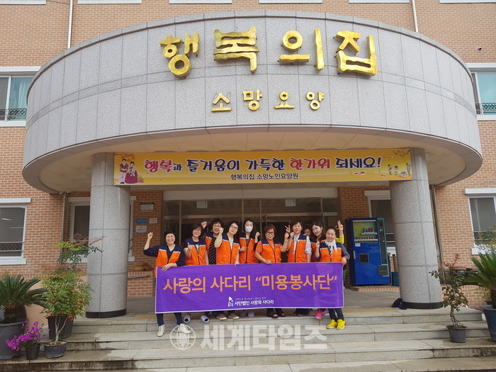 [대전=세계타임즈 이장성 기자] 다양한 봉사활동을 하고 있는 5천명 봉사 빅밴드 사랑의 사다리 밴드(리더 이정제)는 10일 오전9시30분부터 오후1시까지 충북 청주시 서원구 현도면에 위치한 꽃동네 행복의집 소망노인요양원에서 치매 및 와상 어르신들 50여분께 미용봉사와 말벗봉사로 사회적 효행을 실천하였다