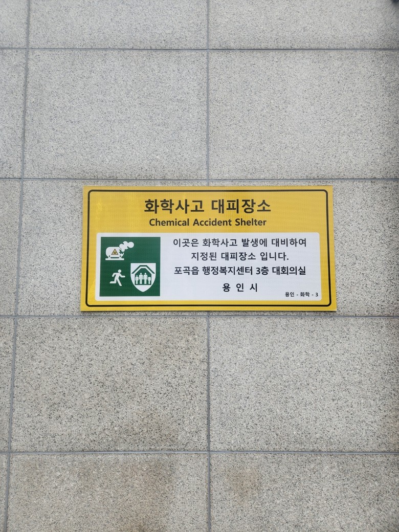 [용인시 세계타임즈=송민수 기자] 용인특례시(시장 이상일)는 화학사고가 발생했을 경우 지역 주민들이 안전하게 대피할 수 있도록 대피장소 40개소를 추가로 지정하고, 이 중 24개소에 안내표지판을 설치했다고 2일 밝혔다.