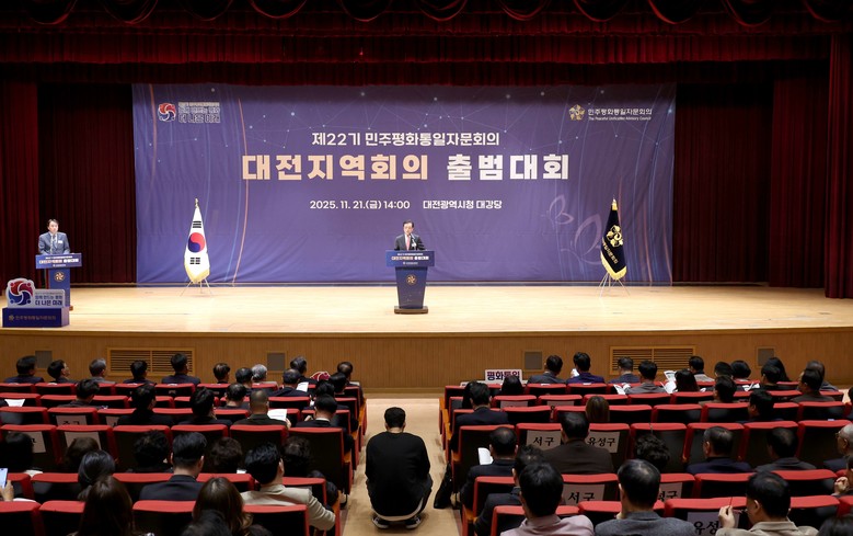 [대전 세계타임즈=이채봉 기자] 대전시의회 조원휘 의장은 21일 대전시청에서 개최된 제22기 민주평화통일자문회의 대전지역회의 출범식에 참석해 축하의 인사를 전하며, 대한민국의 온전한 평화와 번영을 위해 힘써주실 것을 당부했다.