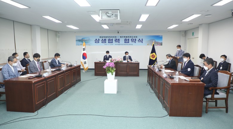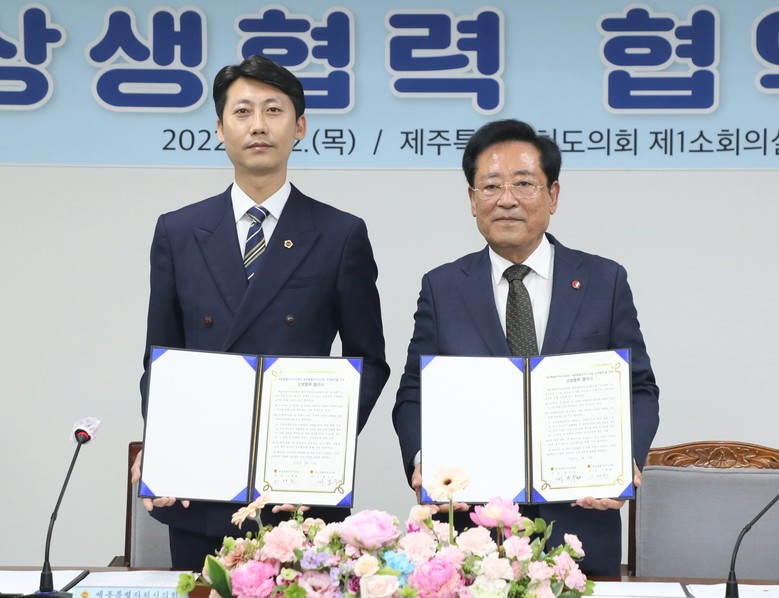 [세종=세계타임즈=이채봉 기자] 세종특별자치시의회(의장 이태환)는 12일 오전 제주도의회 제1소회의실에서 제주특별자치도의회와 상생발전과 상호협력을 위한 ‘상생협력 협약’을 체결했다고 밝혔다.
