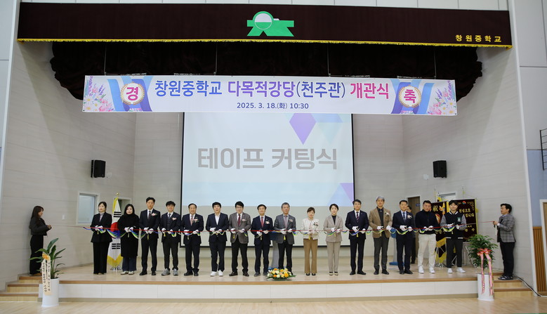 [세계타임즈]최성룡기자 = 창원중학교는 2025년 3월 18일 새로 건립된 '천주관' 다목적 강당의 개관식을 성황리에 개최하였다.
