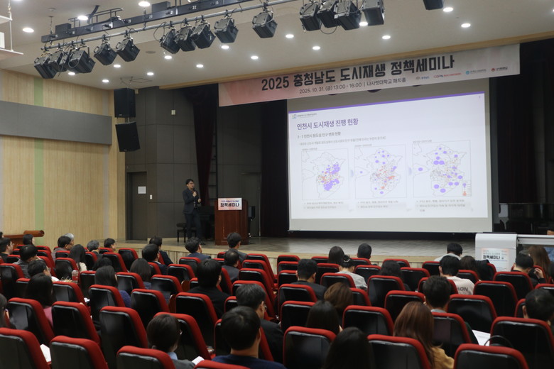 도와 충남 도시재생지원센터(충남경제진흥원)는 31일 천안 나사렛대학교에서 석민 도 주택도시과장과, 이재우 한국도시재생학회장, 도·시군 관계자, 도시재생 전문가, 학계, 지역 활동가 등이 참석한 가운데, ‘2025년 충남도 도시재생 정책세미나’를 개최했다.